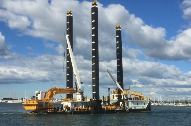 Heron equipped the pontoon in New Zealand with a Liebherr P9150 excavator, which can dredge up to a depth of 19 meter.