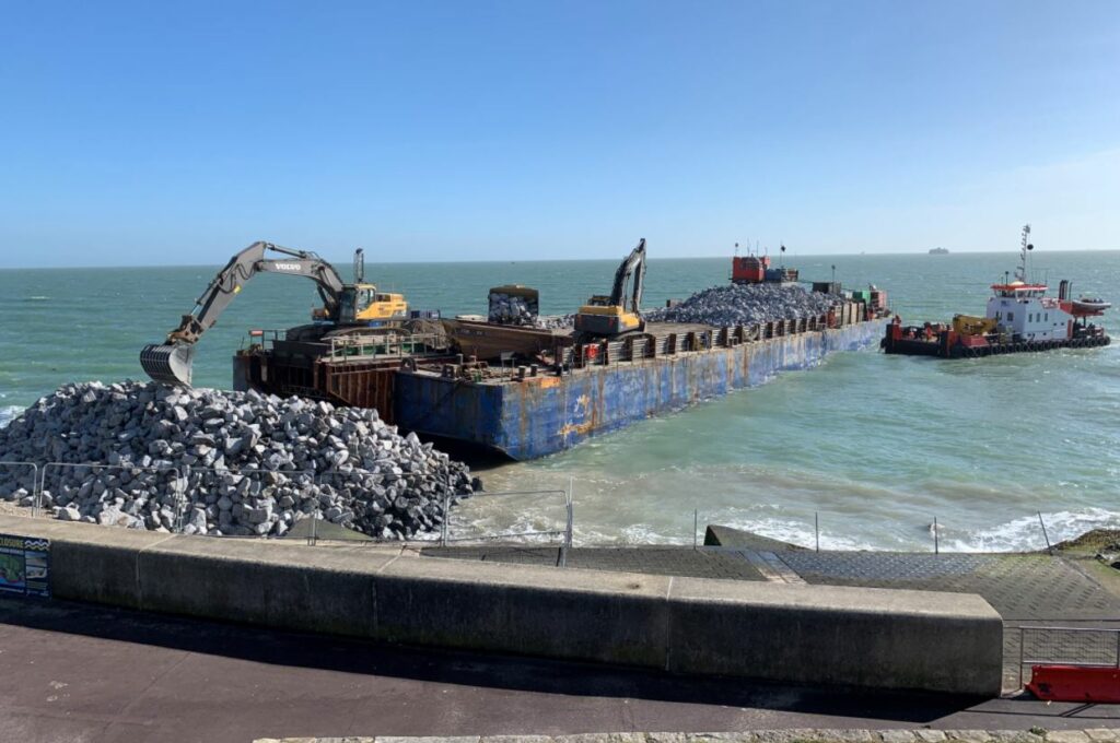 The first delivery of rock for the Southsea Coastal Scheme is almost complete – one of many due over the summer months.