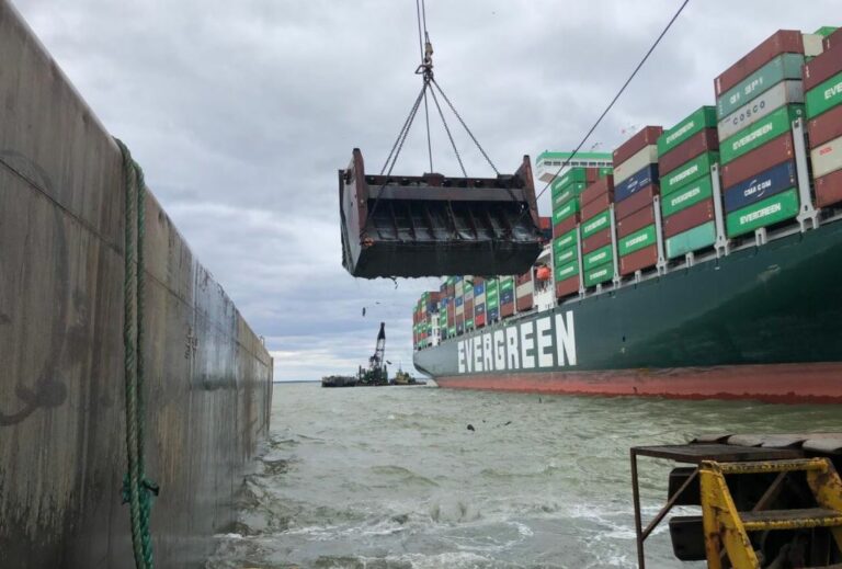 Dredging operations are underway to free the Evergreen Marine containership Ever Forward, stranded in the Chesapeake Bay for more than a week now.