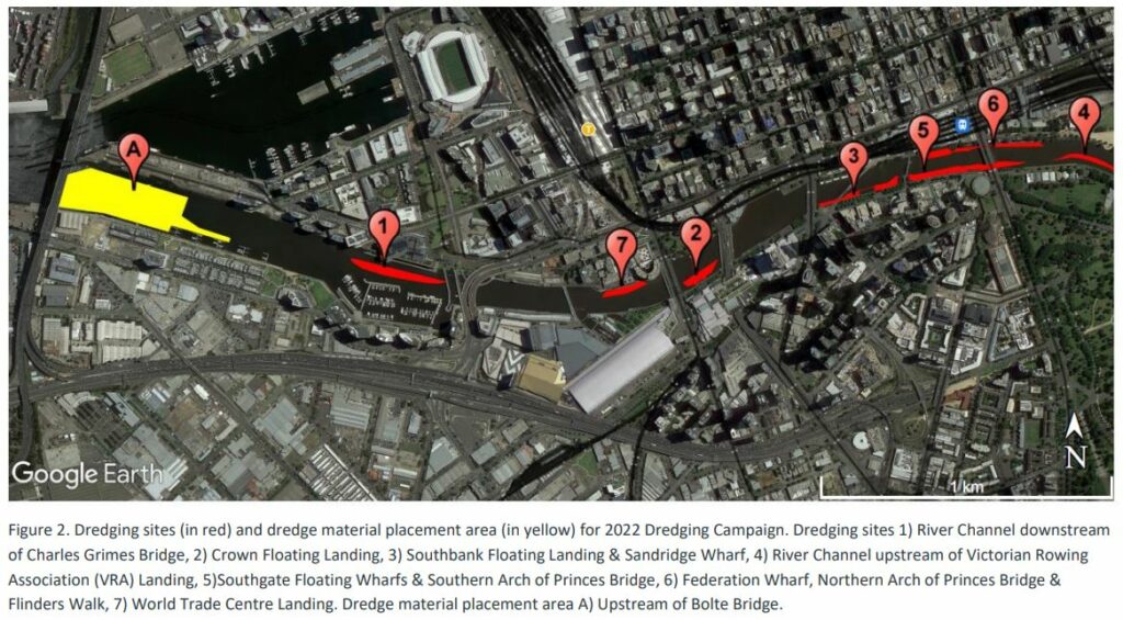The dredging operations are being undertaken from the Bolte Bridge and through the CBD (suburb in the City of Melbourne).