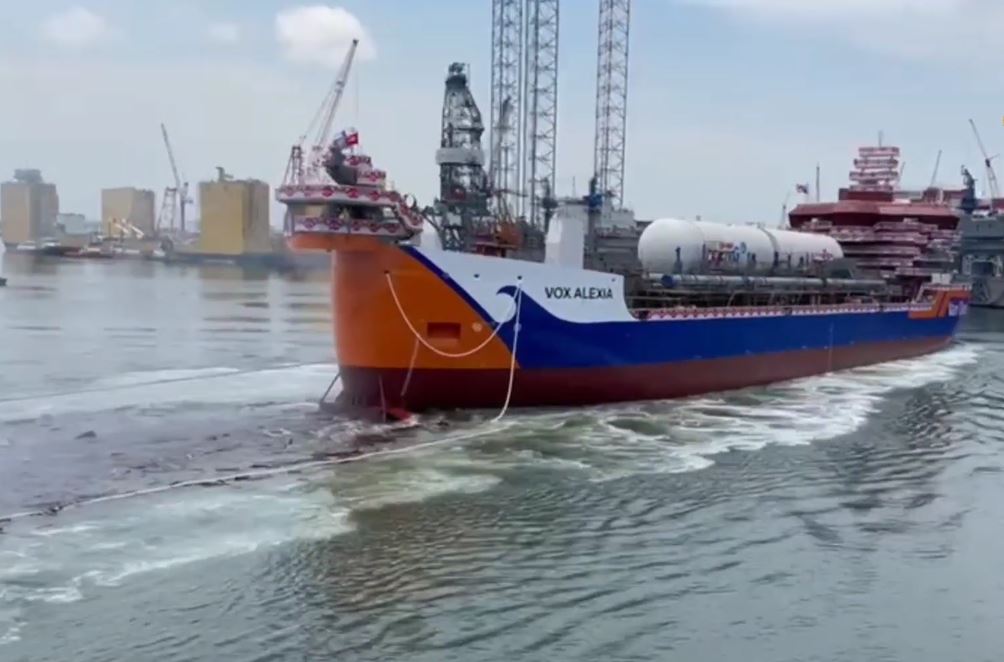 Van Oord’s new LNG trailing suction hopper dredger (TSHD) Vox Alexia hit the water last week in Singapore.