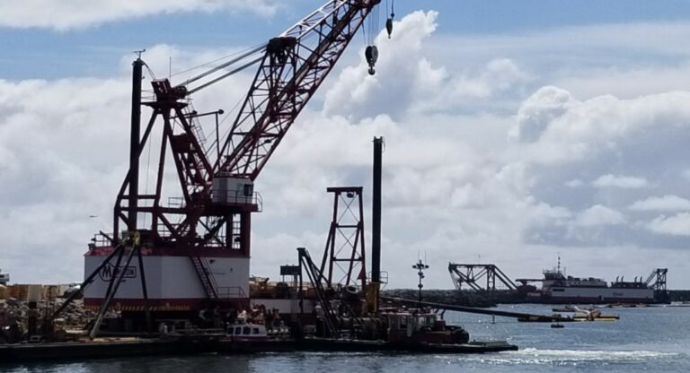 Last year, Manson Construction removed over 300,000 cubic yards of sand from the inlet, dredging it to a depth of minus 30 feet. Most of the dredged sand was used to fill in deep erosion that was caused by the winter storms.