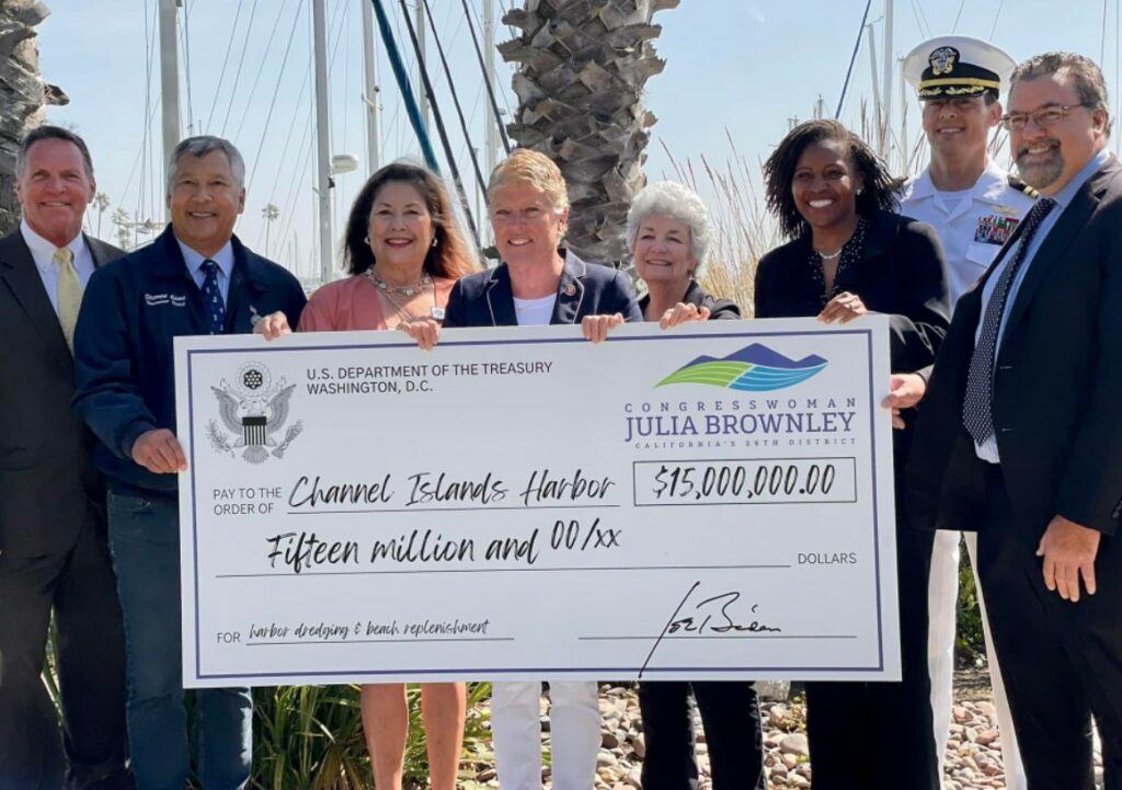 Yesterday morning, Congresswoman Julia Brownley presented the County of Ventura and Ventura County Harbor Department Director Michael Tripp with a ceremonial check for $15 million for the bi-annual maintenance dredging of the Channel Islands Harbor.