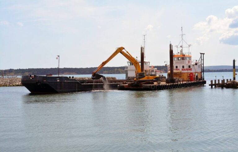 Dredging is now underway at Poole Yacht Club to clear the entrance of accumulated sediment – this has built up since the last dredge operations in 2014, Jenkins Marine said.