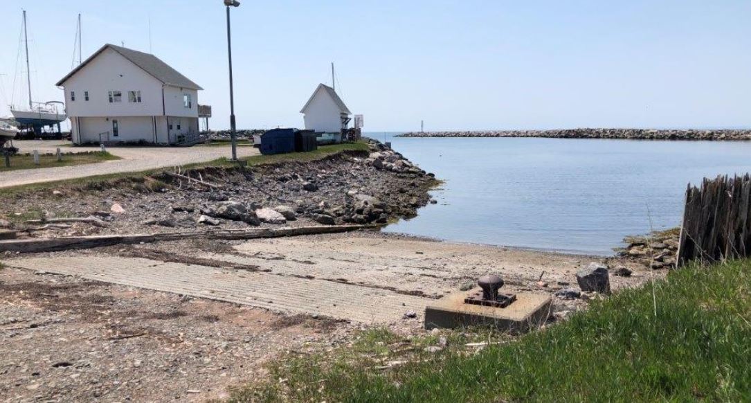 Preparations are underway for the reconstruction of the Paspebiac Fishing Harbour boat launching ramp in Gaspe, Quebec.