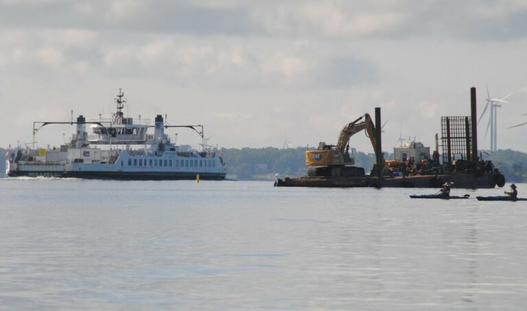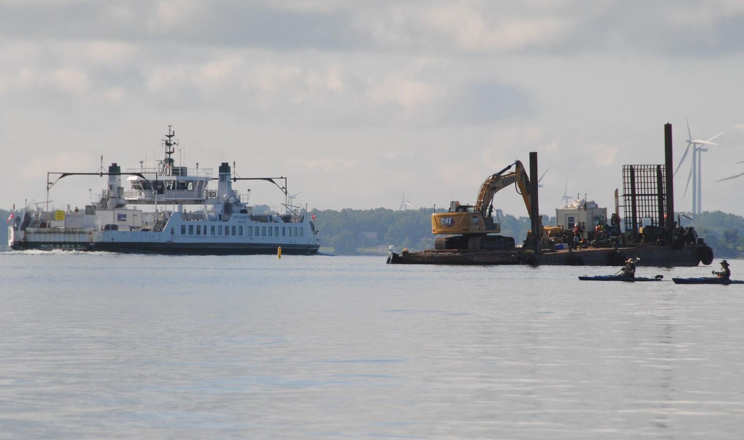 Overall, the project includes excavation/dredging to deepen and widen the riverbed along the Wolfe Island ferry route between Kingston and Marysville. This will ensure that the existing and future ferry service has enough clearance for operation.
