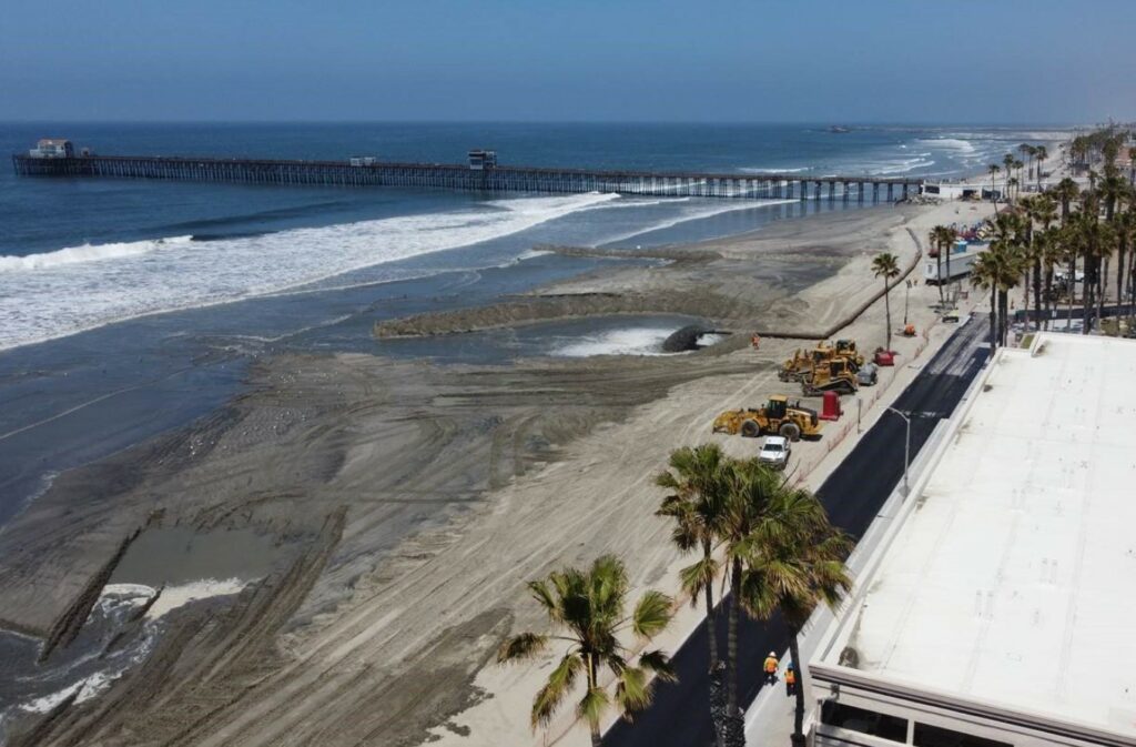 “The high surf warnings that were expected to occur this past weekend, did not materialize. Manson Construction did not need to remove the dredge pipe under the City Pier. This allowed them to continue depositing dredged sand south of the Pier,” the city said in the update.