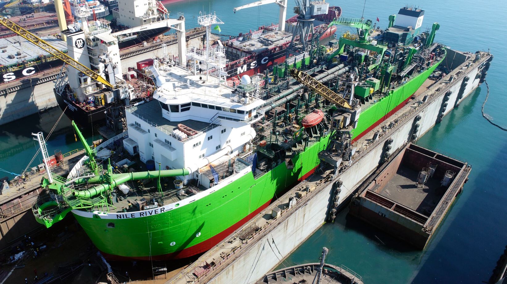 DEME’s trailing suction hopper dredger (TSHD) Nile River and cutter suction dredger D’artagnan are being serviced in GEMAK facilities in Tuzla, Turkey, at the same time.