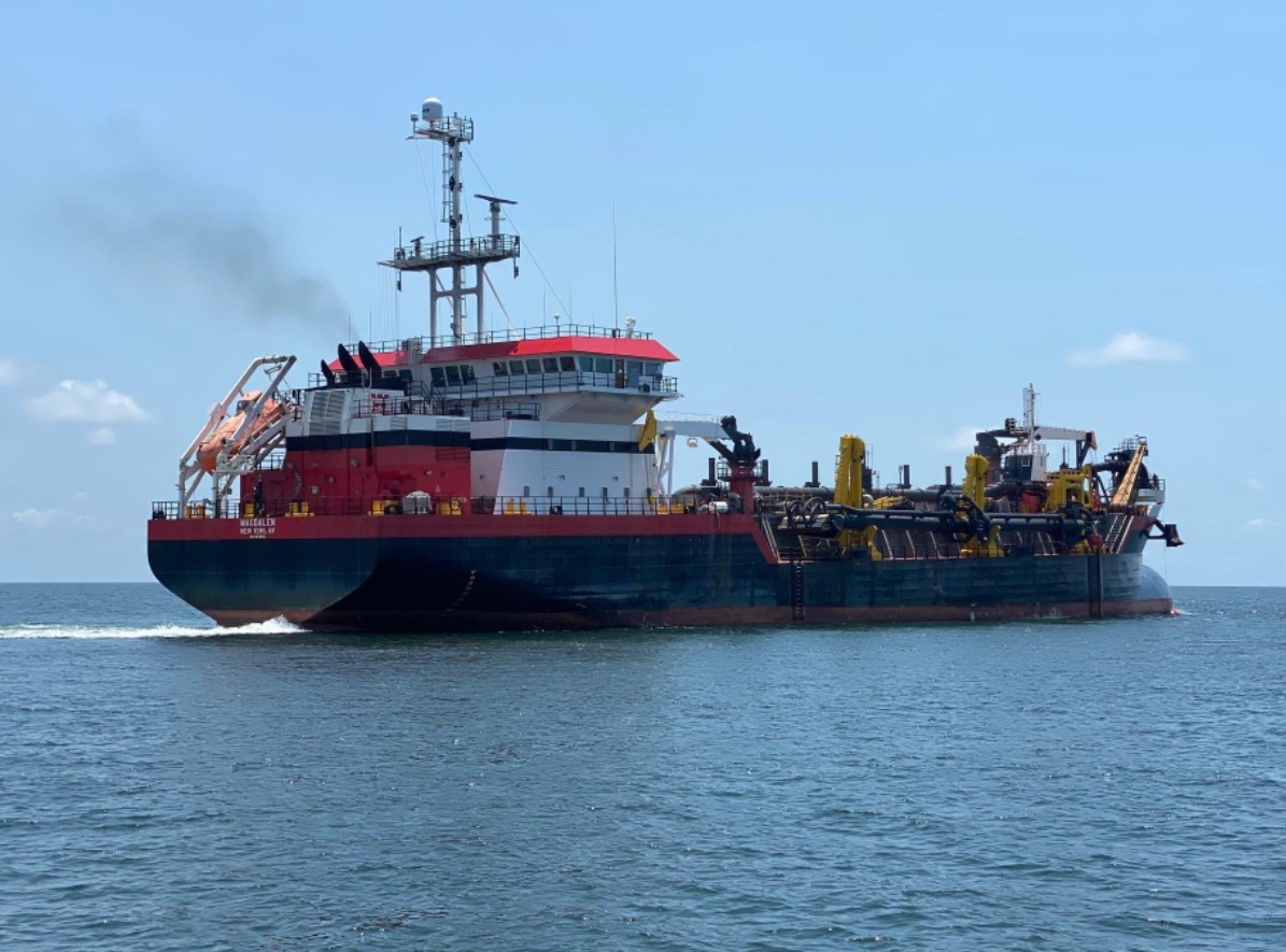 Louisiana Coastal Protection and Restoration Authority (CPRA) yesterday released a photo of trailing suction hopper dredger (TSHD) Magdalen working on the Terrebonne Basin Barrier Island and Beach Nourishment project.