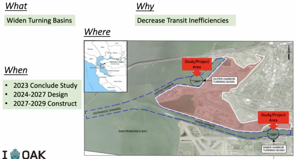 “This is an exciting time for the Port to advance the Turning Basins Widening Study,” said Port of Oakland Maritime Director, Bryan Brandes.