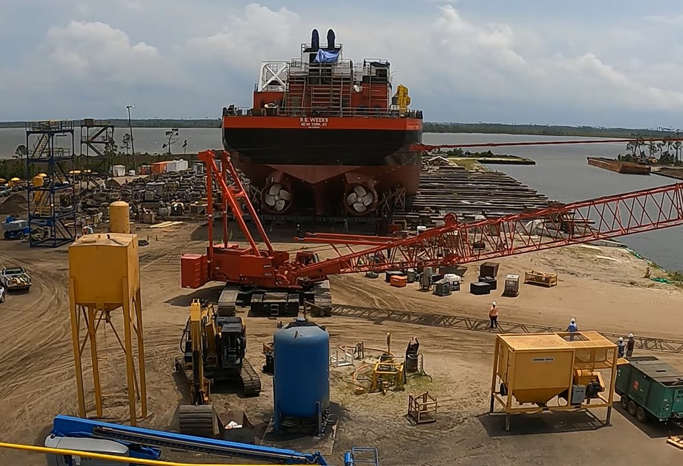 Eastern Shipbuilding Group is getting ready for the launch of Weeks Marine latest hopper dredge, the R.B. Weeks.