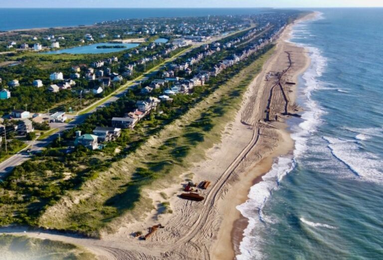 According to Dare County, until Friday, the dredge Ellis Island delivered 25 loads of sand onto the beach and placed approximately 250,000 cubic yards of sand between Greenwood Place and ORV Ramp 38.