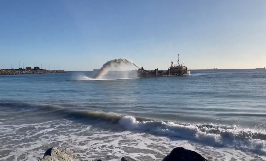 Over the next few weeks, Rohde Nielsen who is completing the works will dredge up to 150,000m3 of sand from the port’s channel and deliver it onto the Port Beach.