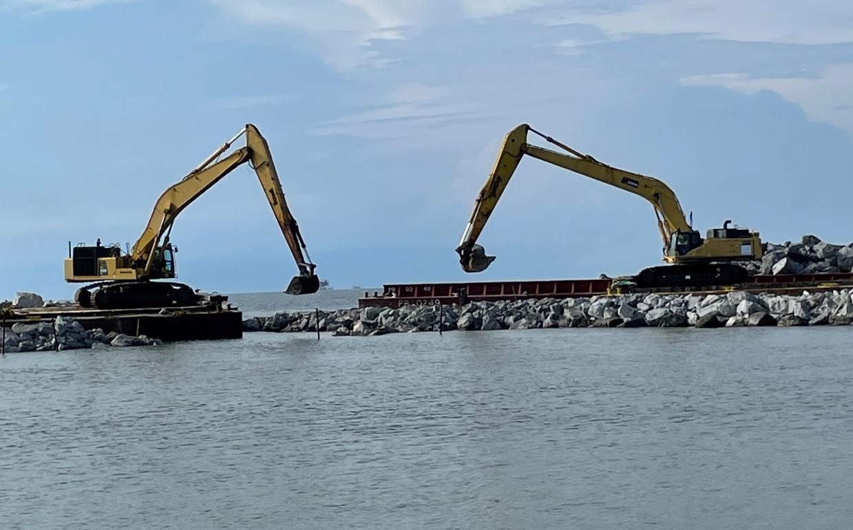 Under this program, six offshore stone segmented breakwaters were constructed along the gulf-side western end of the island.