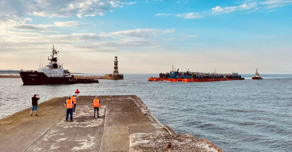 More than 20,000 tonnes of rock armour boulders for strengthened sea defences are being unloaded at the Port of Sunderland.