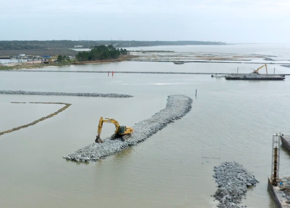 The Lightning Point coastline, located at the confluence of the Bayou La Batre navigation channel and Mississippi Sound, on the coast of Alabama, has been repeatedly exposed to tropical cyclone impacts throughout history and has lost some 600 feet of shoreline over the last 100 years. The main objective of the Shoreline Restoration Project was to restore habitat and resources that were injured as a result of the BP Deepwater Horizon oil spill.