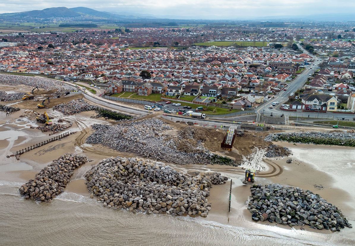 The successful placement of 128,000 tonnes of rock armour in front of the existing sea defences at East Rhyl and the newly added 600 metres of sea defence wall and promenade will protect the area from current storms and the impact of climate change.