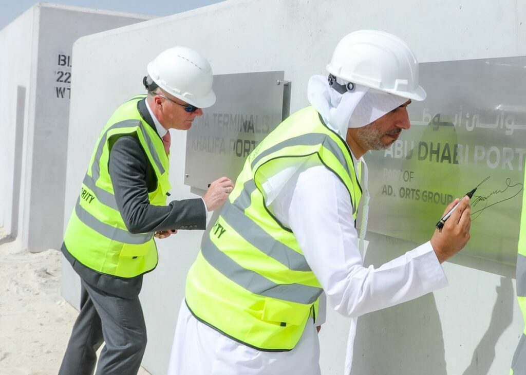 Senior executives from AD Ports Group, CMA CGM, and marine contractor National Marine Dredging Company (NMDC) attended the ceremony, where they signed the block and watched as it was lowered into place via a sea crane.
