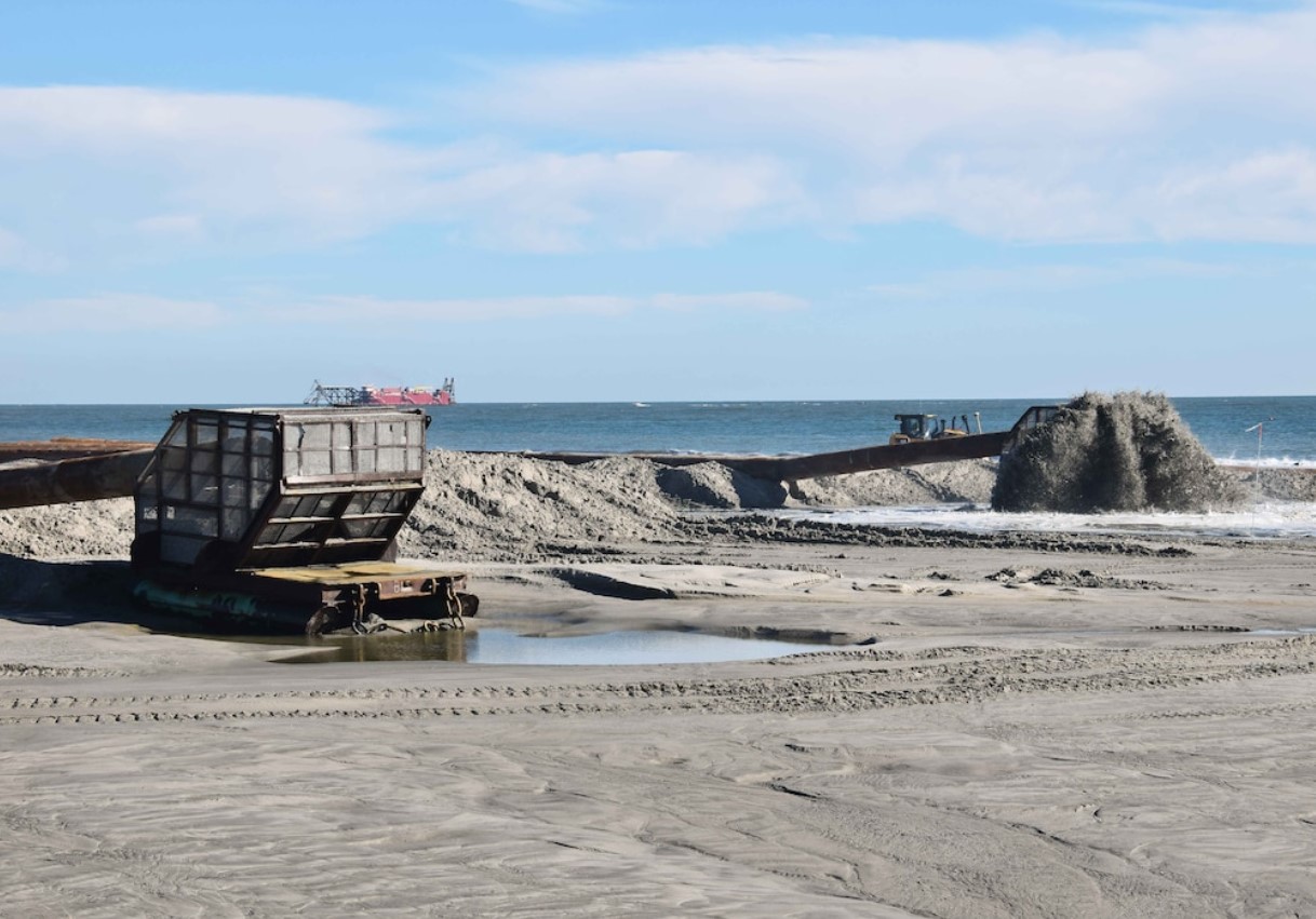 The sand is then pumped through pipeline onto the beach and graded into an elevated berm. Sand placement activities will take place from 14th Street to the Seaview Road groin area.