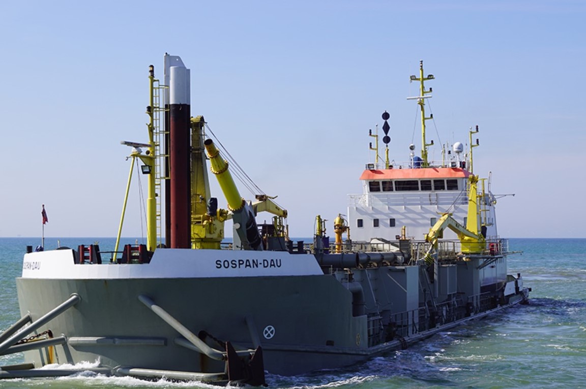 For the works, the contractor will be using the “plough” vessel “F48” (LOA 14.7m) and trailing suction hopper dredger (TSHD) “SOSPAN DAU” (LOA 71.1m).