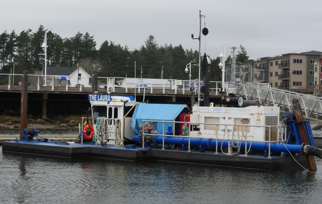The project is being undertaken by the State of Oregon owned dredge “THE LAURA”. She is an Ellicott-360SL swing ladder suction dredge utilized for various projects throughout the State, especially along the south coast to dredge launch ramps and marinas.
