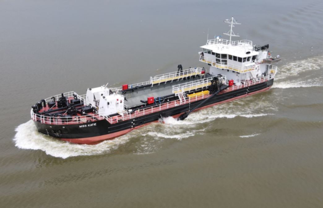 Miss Katie – which is the result of a yearslong collaboration between Dare County officials and EJE Dredging Service, the company that owns the dredger – departed from Conrad Shipyard in Morgan City, Louisiana, on August 13, 2022, and on August 19, 2022, she officially arrived in Wanchese Harbor, which will serve as the dredge’s homeport.