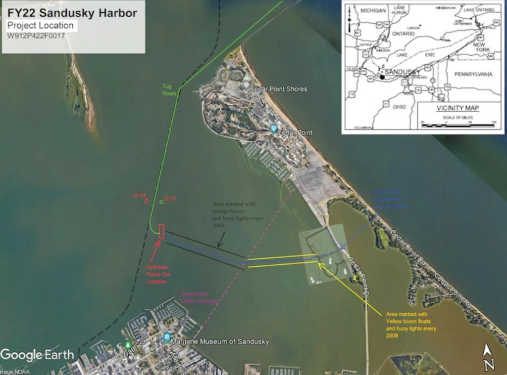USACE dredges Sandusky Harbor annually based on available funding. Dredging ensures federally authorized depths are maintained and the harbor remains accessible to large vessels for the continued flow of commodities across the Great Lakes and the nation.