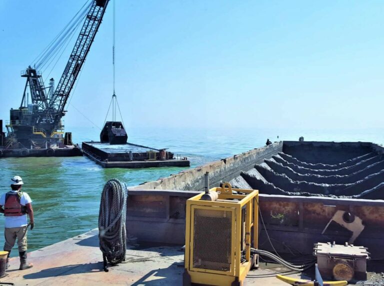 According to the Corps, dredging that will focus on the harbor’s Moseley Channel is scheduled to continue into November. The 24-hour operation could see the project completed sooner.