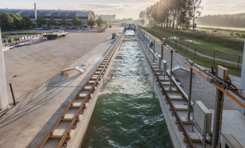 The Delta Flume simulates conditions in a superstorm, recreating extreme waves for instance, and this enables the wave-neutralizing effect of the saltmarsh vegetation to be measured.