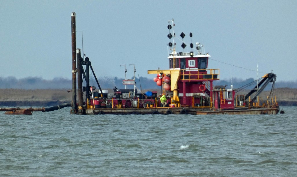 Maintenance dredging by USACE contractor, Barnegat Bay Dredging Company, is underway at the lower end of Maurice River in Cumberland County, NJ.