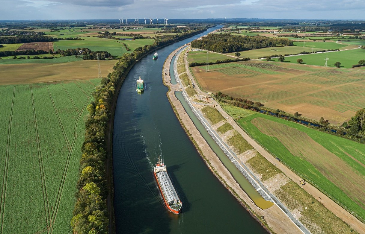 A team performing the widening of the Kiel Canal in Germany is making steady progress, with dry earth and revetment works in full swing, DEME Group said.