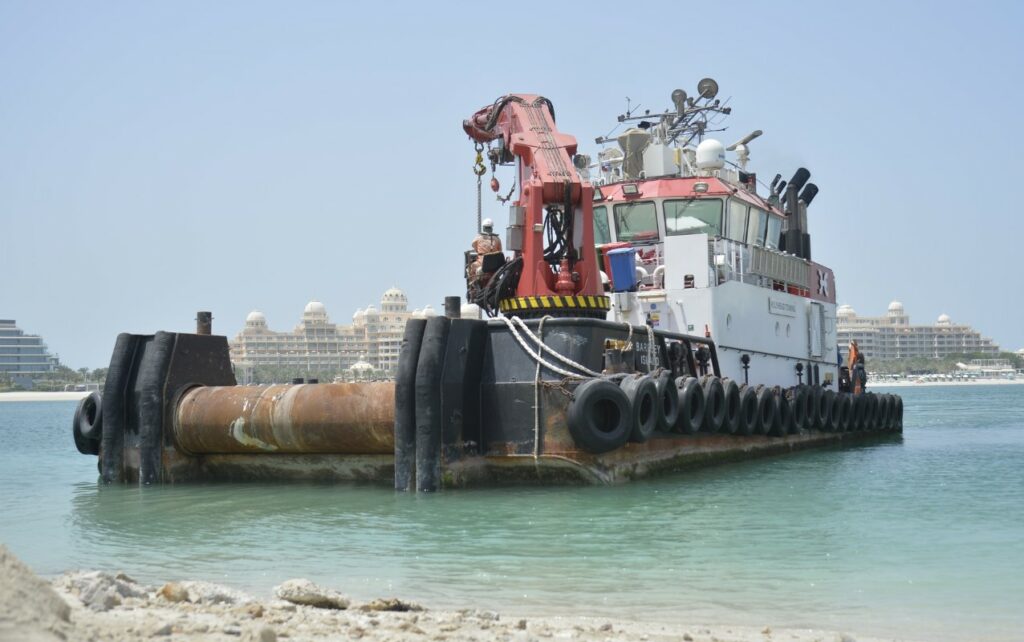 Holyhead Towing Co. Ltd has just released these amazing photos of its multicat Bardsey Island working with Van Oord on the iconic Palm Jumeirah, UAE.
