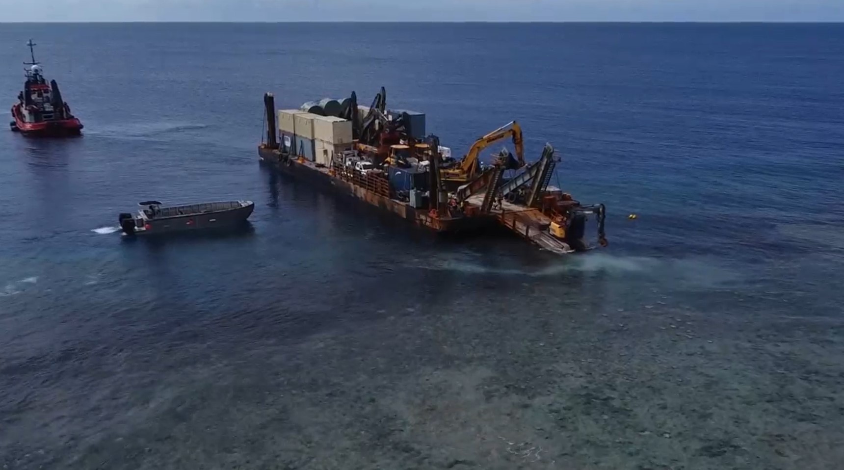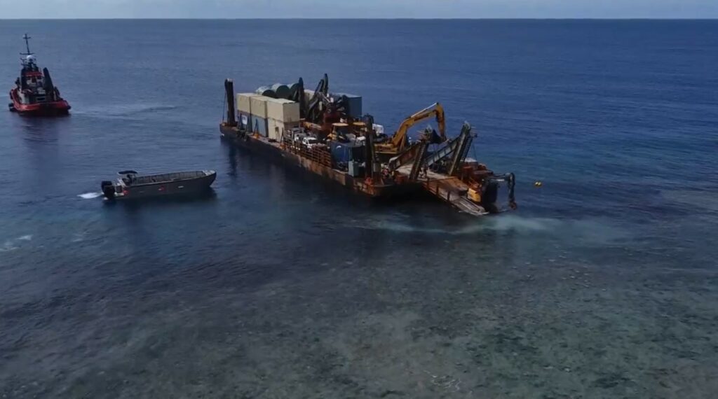 “To address this, our crew landed the ‘Orion’ barge on the edge of the atoll in the surf zone and transported the equipment ashore at low tide.”