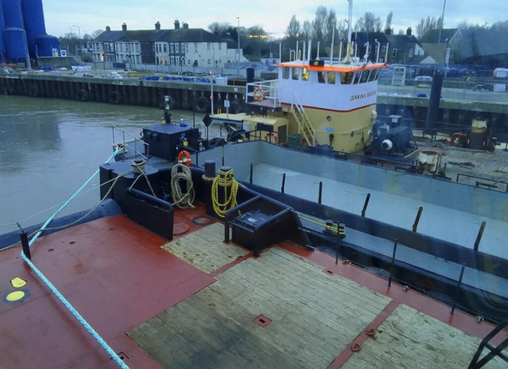 Efficiently managed by the powerful 37tBP Multicat workboat ‘Wind Lass,’ the project unfolded in two phases. First, Wind Lass undertook the tandem tow of the STOUR and the 150m3 capacity split hopper barge ‘HURST‘ from the South Coast to Great Yarmouth in just two days, utilising its powerful deck winches for the tow wires.