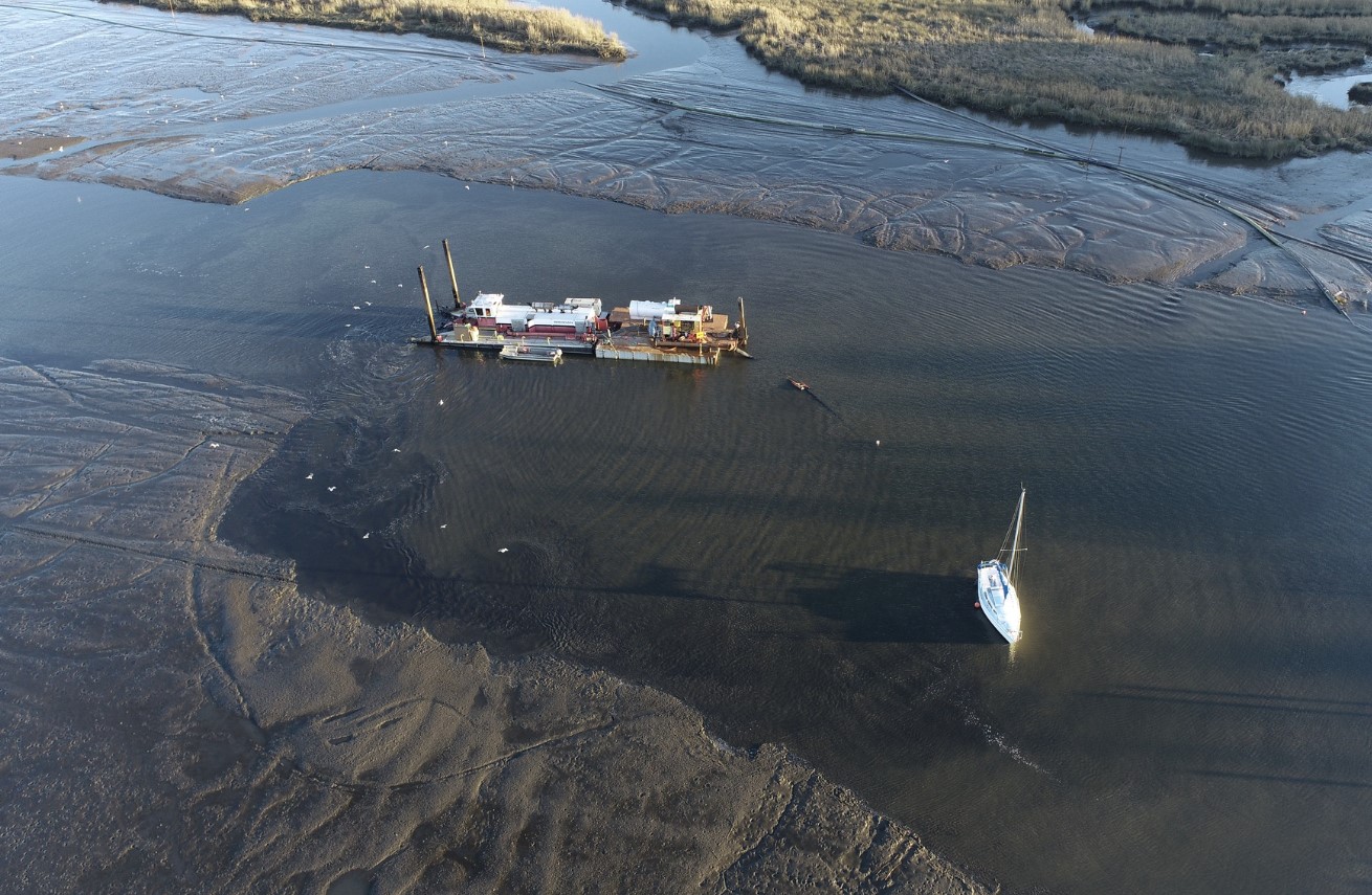 The sediment is being delivered to the Clouter Creek South Cell disposal site in North Charleston. Crews are dredging down eight feet and 200 feet across at low tide.