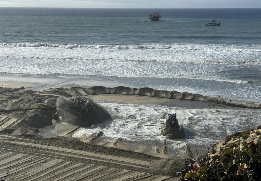 Manson Construction crews have began beach nourishment operations in the City of Solana Beach, CA.