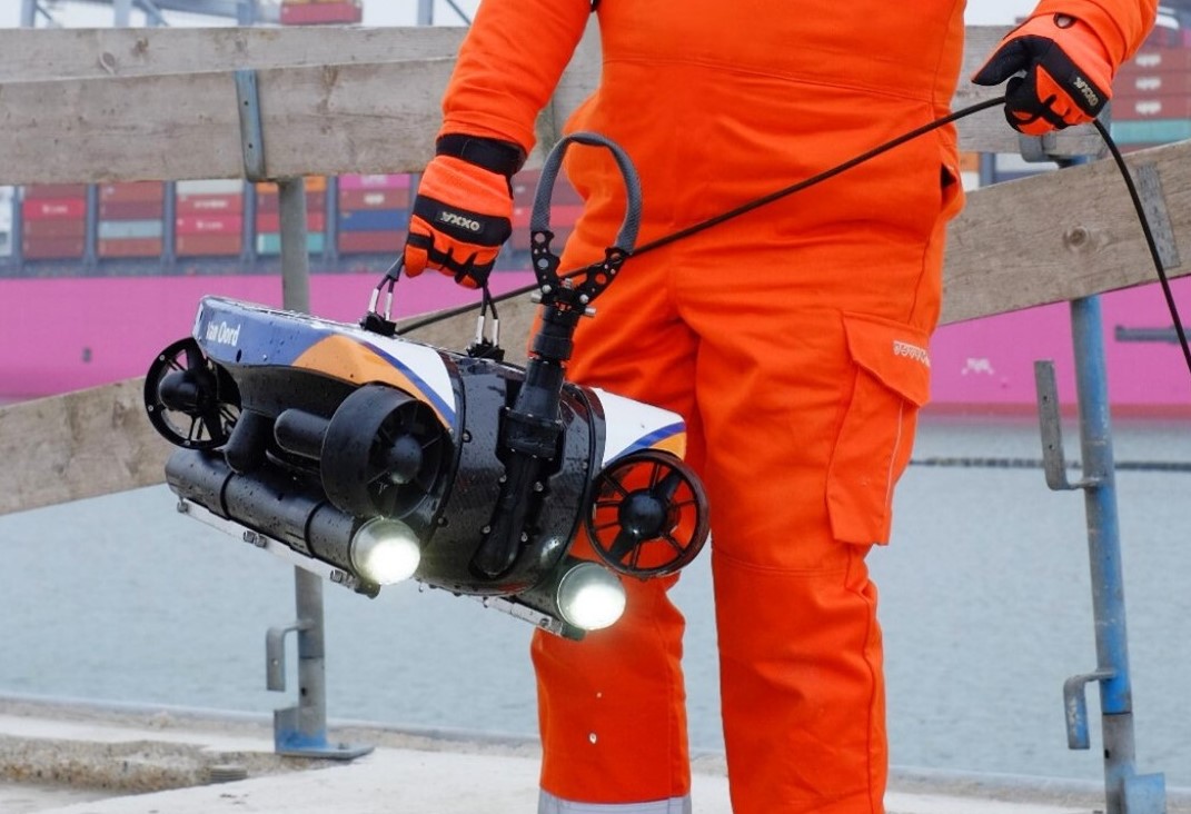 Normally, this is done with the use of divers, but now a handheld ROV drone is being deployed for the first time to take underwater images, said Van Oord.
