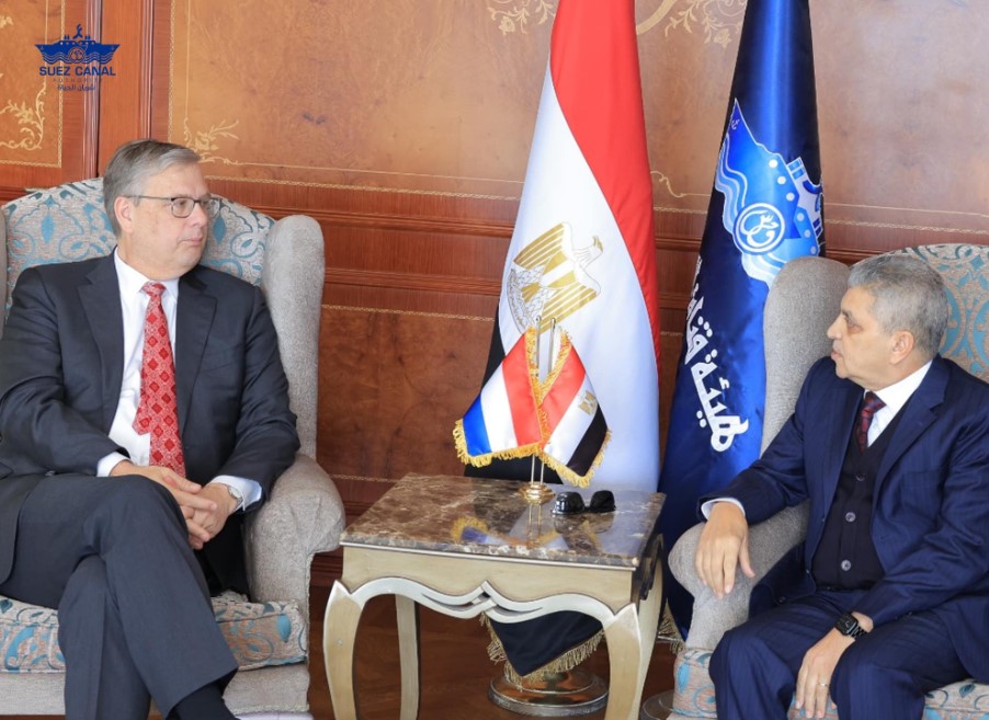 Osama Rabie, the Chairman of the Suez Canal Authority (SCA), this week met with Peter Mollema, the Dutch Ambassador to Cairo, to discuss ways of boosting joint cooperation in the fields of training and green transformation.