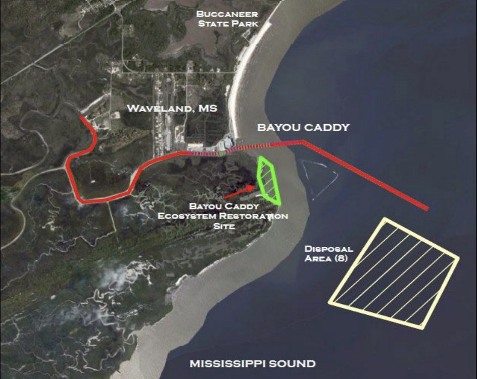 According to the Corps, the project provides for an 8-foot deep by 100-foot-wide entrance channel extending from the 8-foot depth contour in Mississippi Sound for approximately 7,800 feet to the mouth of the bayou. The channel would be maintained via hydraulic pipeline dredge.