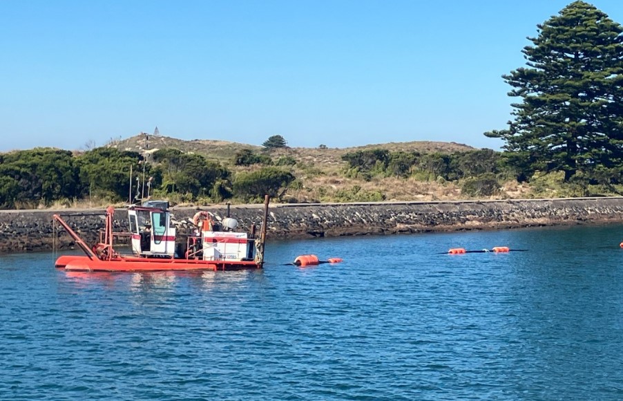 Following on from a recent project to upgrade jetties at the Griffiths Street boat ramp, work is underway to create deeper water near the river mouth.