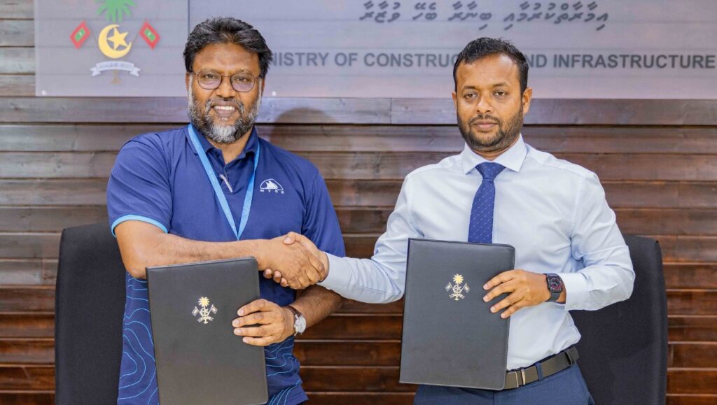 Maldives Transport and Contracting Company (MTCC) signed a contract to conduct land reclamation necessary for the construction of the airport in Faafu Atoll Nilandhoo today.