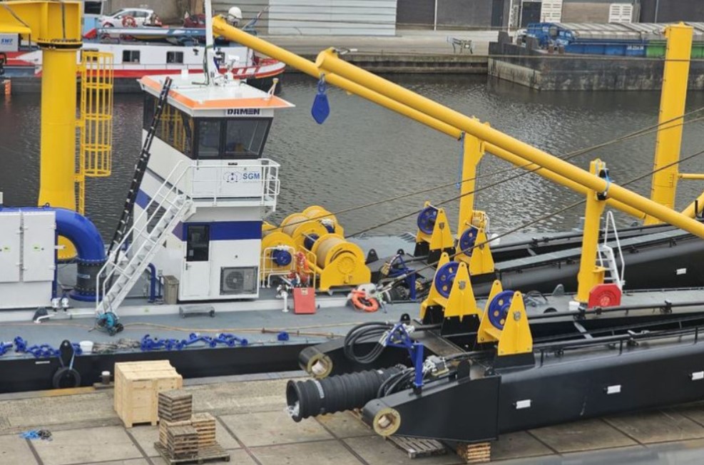 The CSD can work in water depths up to -25 m. According to Damen, the suction ladder incorporates a submerged dredge pump, which works in series with the inboard dredge pump.