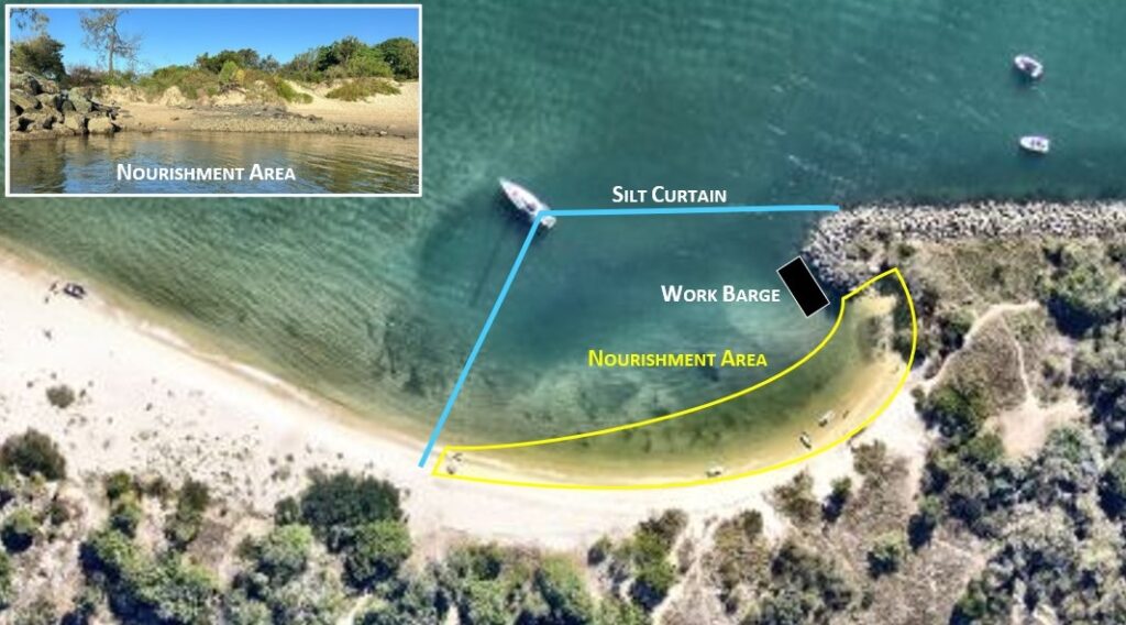On days works are occurring, the site will be temporarily fenced, and silt curtains will enclose the work to retain the sand within the target area,” said GCWA.