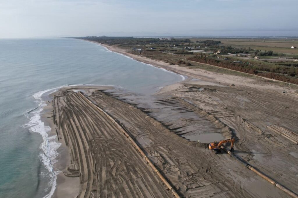 The widened beaches protect low-lying coastal communities, agricultural areas and the Albufera National Park separating its fresh water from the salt water of the Mediterranean Sea.