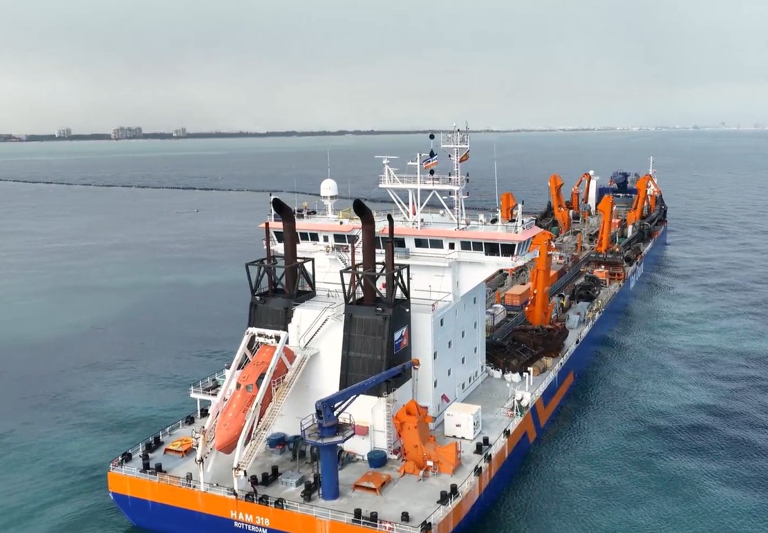Van Oord deployed its largest trailing suction hopper dredger, the HAM 318, to apply 3.3 million cubic meters of sand, extending the beaches up to 150 meters wide. The dredged material was pumped ashore over a distance of 1.8 kilometers, using a combination of floating and submerged pipelines.