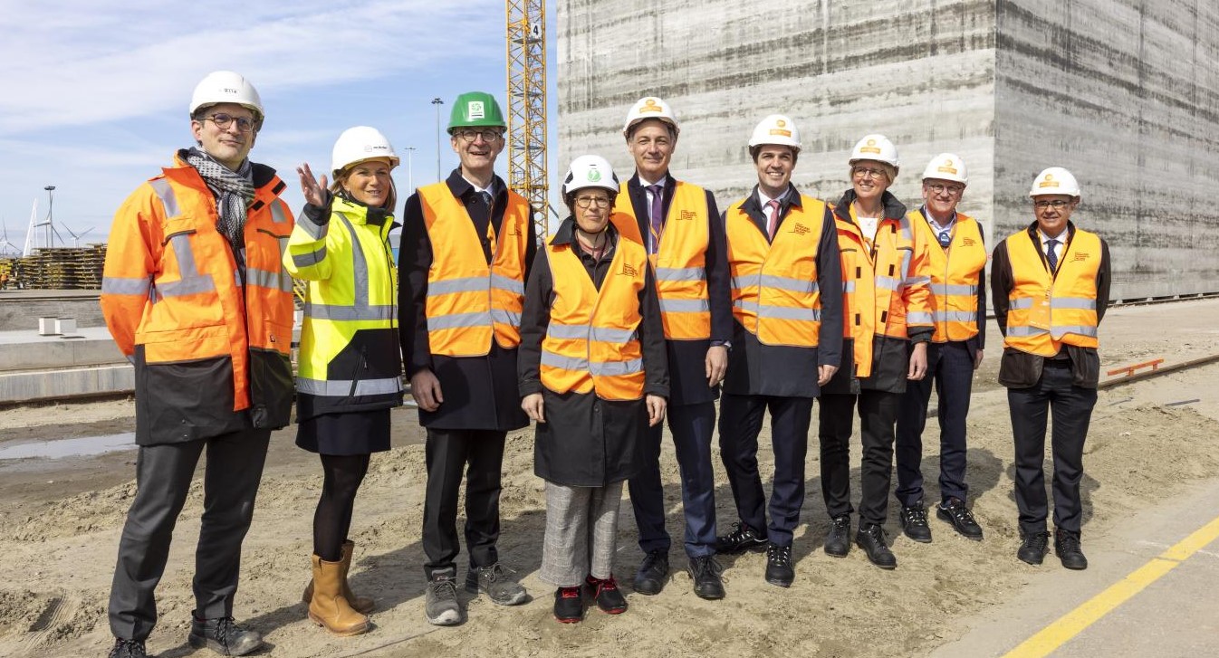 Belgian Prime Minister Alexander De Croo, Energy Minister Tinne Van der Straeten and State Secretary for Economic Recovery and Strategic Investments Thomas Dermine visited the site in Vlissingen recently, where caissons are being constructed for Princess Elisabeth Island.