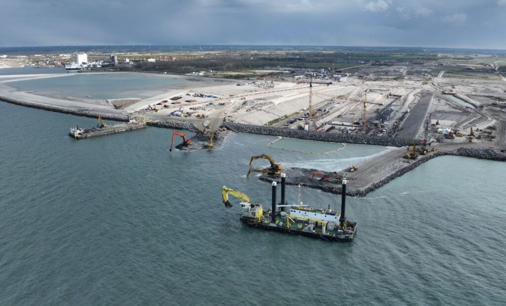 Shortly after the tunnel portal was covered by water, Fehmarn Belt Contractors started digging away the outer, temporary dike.
