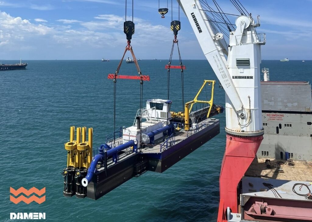 The first Damen CSD600 named Jhoni 58 has been successfully unloaded in Balikpapan, Indonesia, following its journey from the Netherlands.