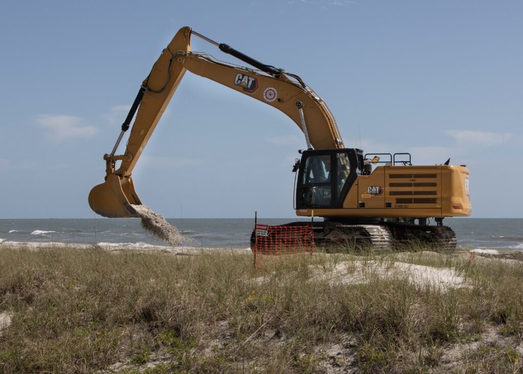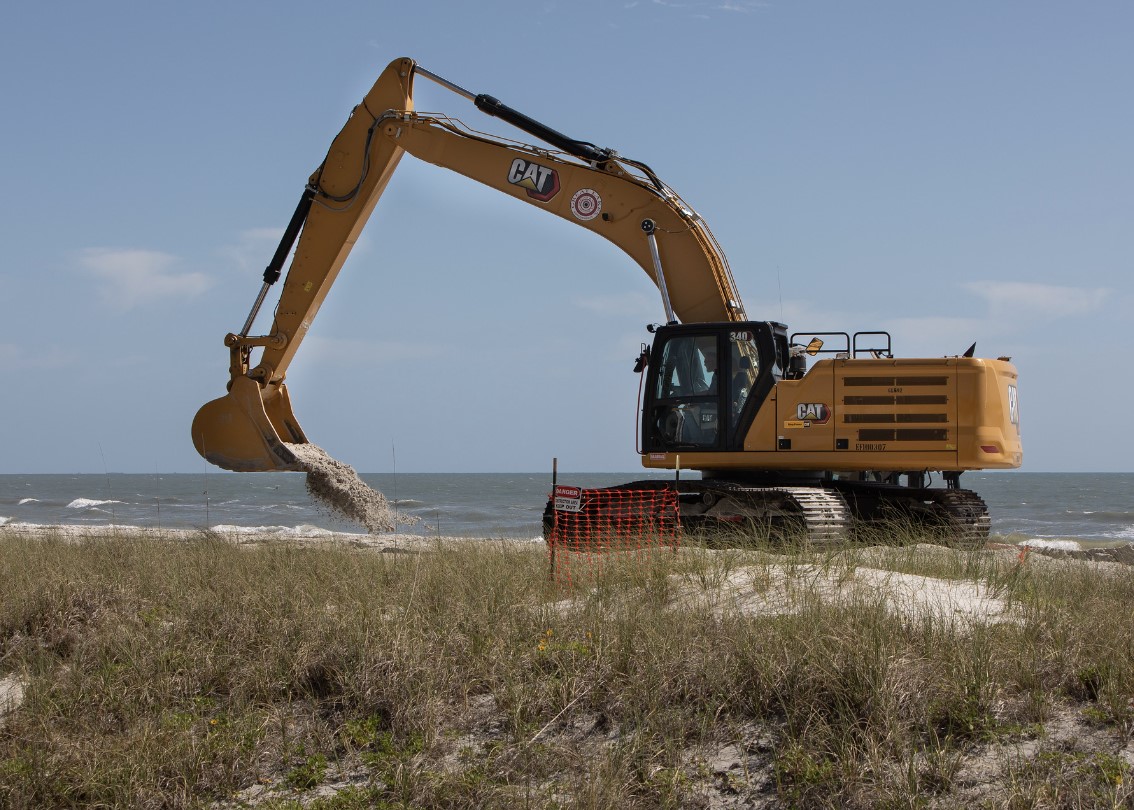 The beach re-nourishment includes construction of both a dune and beach berm with sand sourced from a federally administered offshore borrow area. Beach restoration work will include beach tilling, vibration control and monitoring, environmental species monitoring and turbidity monitoring.