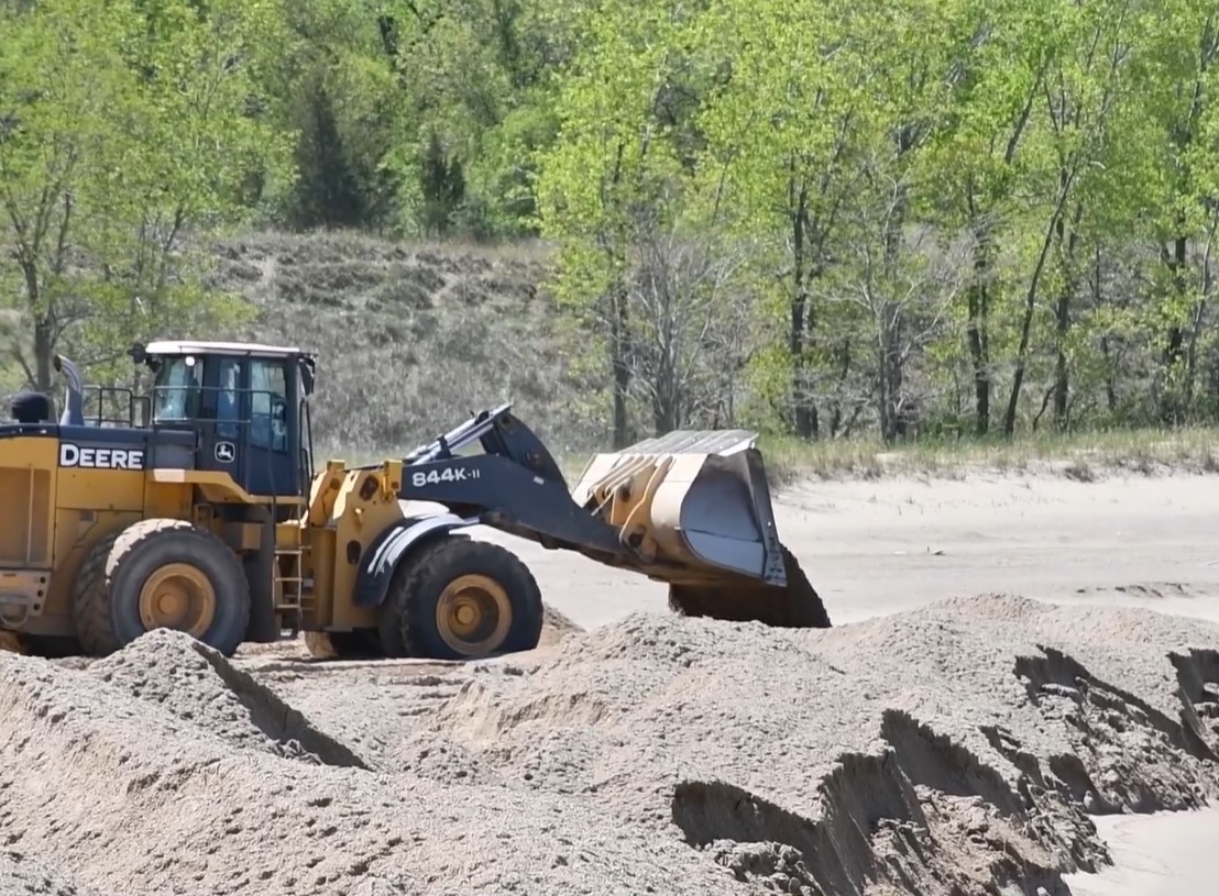 The Indiana shoreline near Mount Baldy dune is receiving sand again this year to help counteract shoreline erosion.